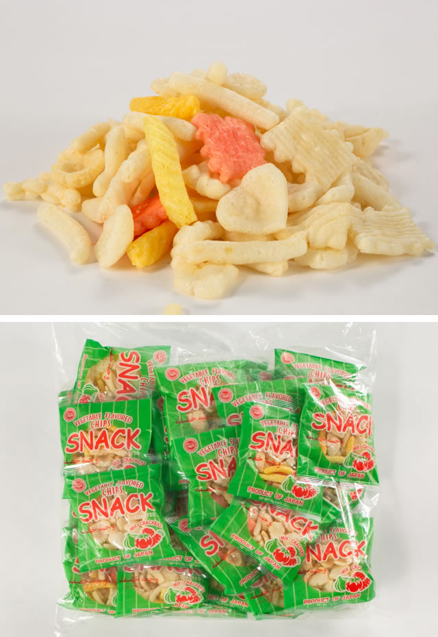 小麦粉, コーンスターチ, 植物油脂, 食塩, たん白加水分解物, 砂糖, 香辛料, 海老, 昆布エキス, デキストリン, 膨張剤, 調味料(アミノ酸), 着色料 (黄色4号, 黄色5号, 赤色40号, 青色1号), 天然着色料 (マリーゴールド色素, トウガラシ色素)